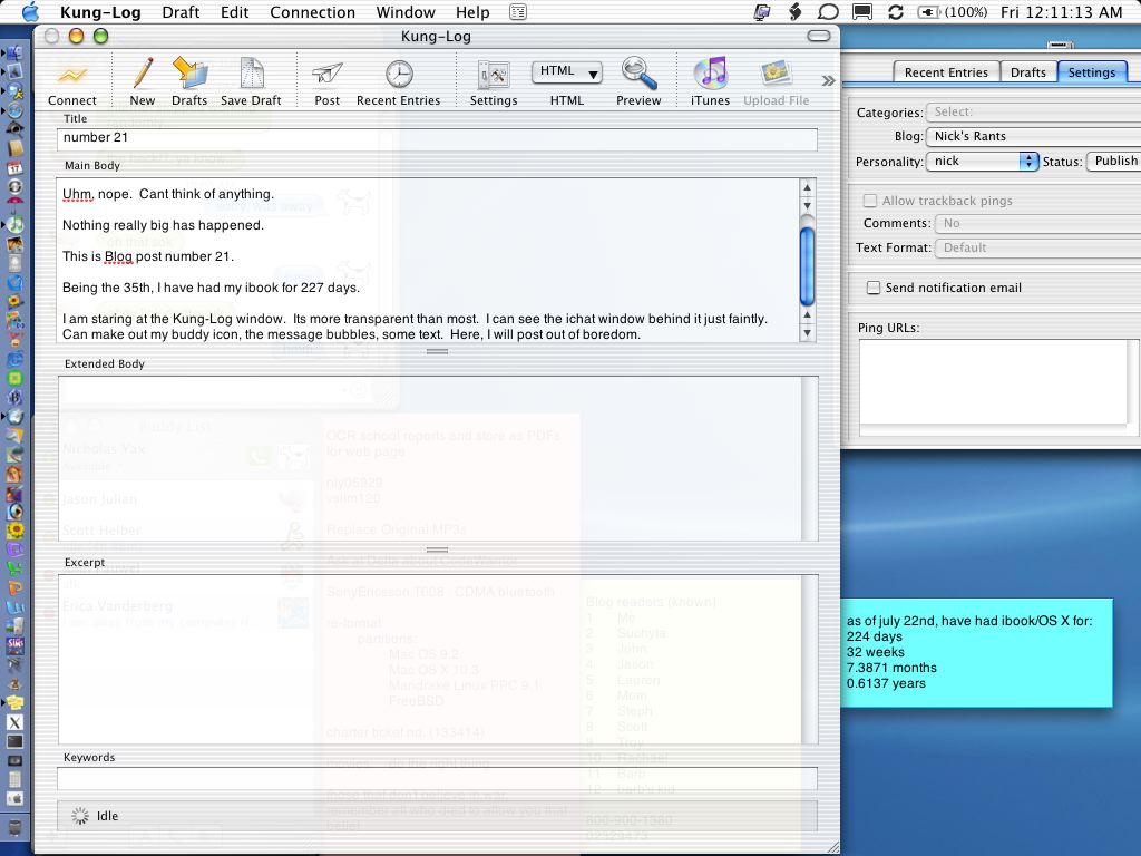 KungLog, Website woes, Running cable, WiFi, Sorry (BUY MY STUFF), KungLog unused features, FREE TRIP, Nevermind, and I need a Shower.